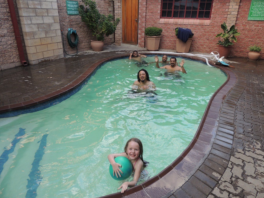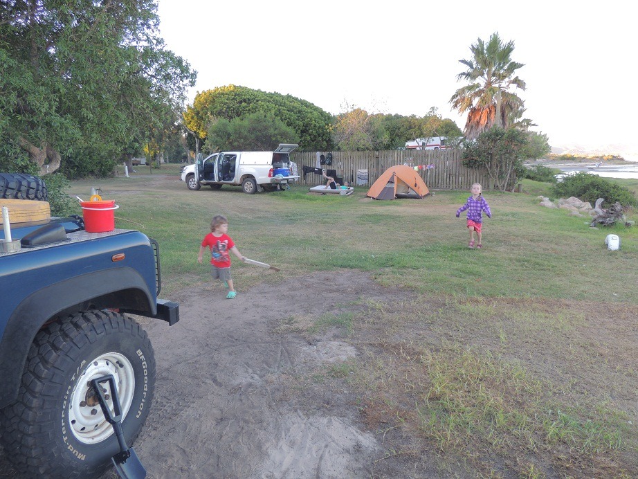 Und ein weiterer Pluspunkt, bis heute Mittag waren unsere Schweizer Nachbarn mit ihrer kleinen Tochter Kaja hier, die in Lenja’s Alter ist. Sie sind für 3 Wochen in SA unterwegs und mussten jetzt weiter (auf dem Foto ist ihr Auto mit Zelt und Papa auf der Luftmatratze). Aber auch nicht schlimm, da Lenja und Silas ein neues Hobby gefunden haben.
