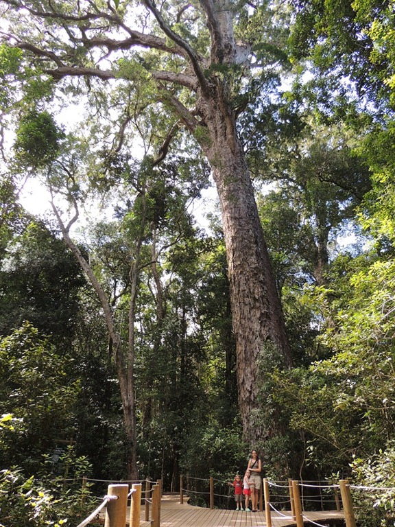 Auf dem Weg zur Brücke kommt man durch einen kleinen Urwald mit vielen Lianen und schönen großen Bäumen. Manche davon müssen permanent abgestützt werden und immer wenn Touristen vorbei kommen, dann wechselt der Ranger, der den Baum bewacht, gegen neue aus. So hat es auch uns getroffen und wir mussten für 15 Minuten den Baum abstützen, der ansonsten umgekippt wäre (außer Silas, der hat sich strikt geweigert der alte Dickschädel):