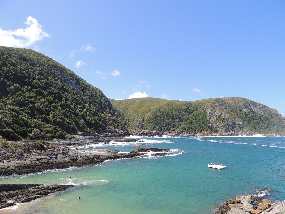 Unser Ziel für die nächste Reiseetappe war Plettenberg Bay, wieder gelegen am Indischen Ozean an der Ostküste. Auf dem Weg dorthin haben wir Humansdorp passiert, ein schönes Städtchen in welchem wir unsere Vorräte auch wieder aufgefüllt haben. Schön auch vor dem Hintergrund dass hier ein ehr arabisch afrikanisches Feeling aufkam. Überall wuselte es, wurde erzählt und irgendwas verkauft. Auf dem Parkplatz vor Shopright, einem Supermarkt der ehr günstigen Kategorie wo wir eingekauft haben war eine Party im Gange wie man sie sich afrikanischer nicht vorstellen kann. Ein paar Jungs hatten ein paar alte Boxen aufgebaut, Strom gab’s aus einem kleinen Laden und die legten super Dance auf, sehr afrikanisch angehaucht. Wir und die Kinder hatten riesen Spaß der Musik zuzuhören und eine Gruppe Afrikaner auf einer Pritsche von einem Pickup haben das Ding kräftig in Schwingung versetzt. Hier hätten die “klassischen” Touristen wohl ehr zu viel bekommen da man durchaus gewisse Empfindungen hätte entwickeln können dass man gleich überfallen, beklaut,… wird. Aber wie bisher immer haben wir uns sehr wohl gefühlt und alle waren sehr nett und interessiert.