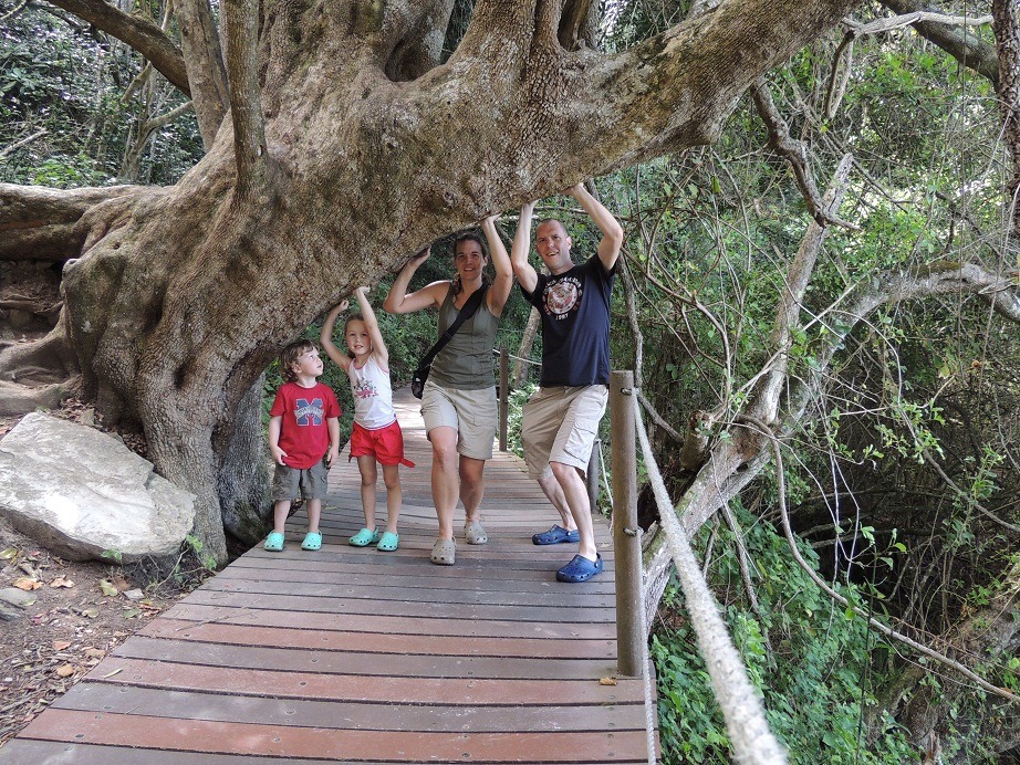 und die Stormsriver Bridge, im Tsitsikama Nationalpark angeschaut. An der Brücke, die wunderschön gelegen war haben wir dann direkt unseren Mittagsstop eingelegt und ein paar Meeresfrüchte zu uns genommen. Der Blick vom Restaurant war herrlich und die Kinder hatten am Sandstrand ihren Spaß.