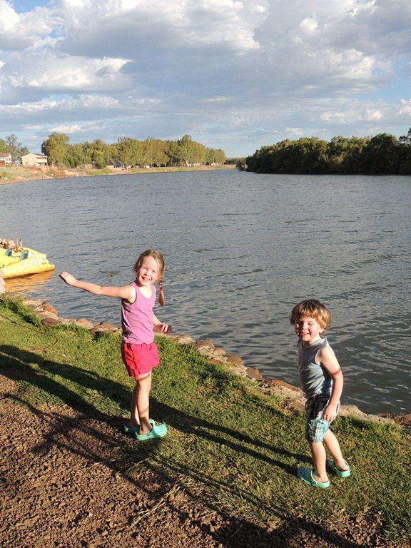 Auch hier hatten die Kinder wieder genug Spielmöglichkeiten. Das Trampolin wurde gleich in Beschlag genommen, wobei die 33° C Außentemperatur munter weggesprungen wurden. Hüpft man nur kräftig genug ist es wie eine Art Fahrtwind beim Autofahren. Unten am Fluß wurden begeistert die Flußkrebse bestaunt, die sich immer wieder unter Steinen versteckt haben.
