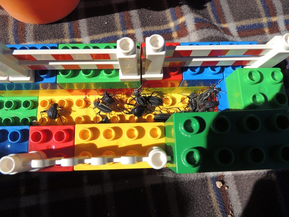 Lenja und Silas sammeln immer um die Wette wer die meisten Tiere findet. Anschließend wird dann z.B. aus Lego ein kleiner Zoo gebaut mit Mauern in dem sich das ganze Getier dann aufhalten kann. Lenja ist auch schon so weit, dass sie alles einsammelt und in den Eimer oder die Tasche steckt, was so rumwuselt. Anfänglich hat sie noch immer gerufen “Muckel, guck mal, ein Käfer, tu den mal in den Eimer”, aber mittlerweile hat sie jegliche Scheu vor den Jungs mit den 600 und 6 Beinen verloren.