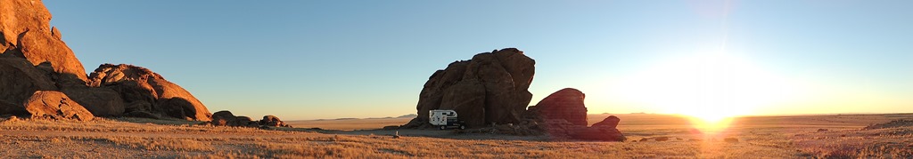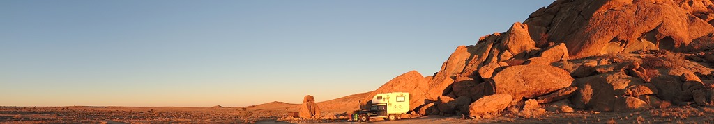 Unser erster Stellplatz war dabei die Mirabib Camsite, gelegen an einem sehr großen Felsen im Mitten von ziemlich wenig, aber wunderschön. Hier ein kleines Suchbild, wo könnten wir wohl stehen?