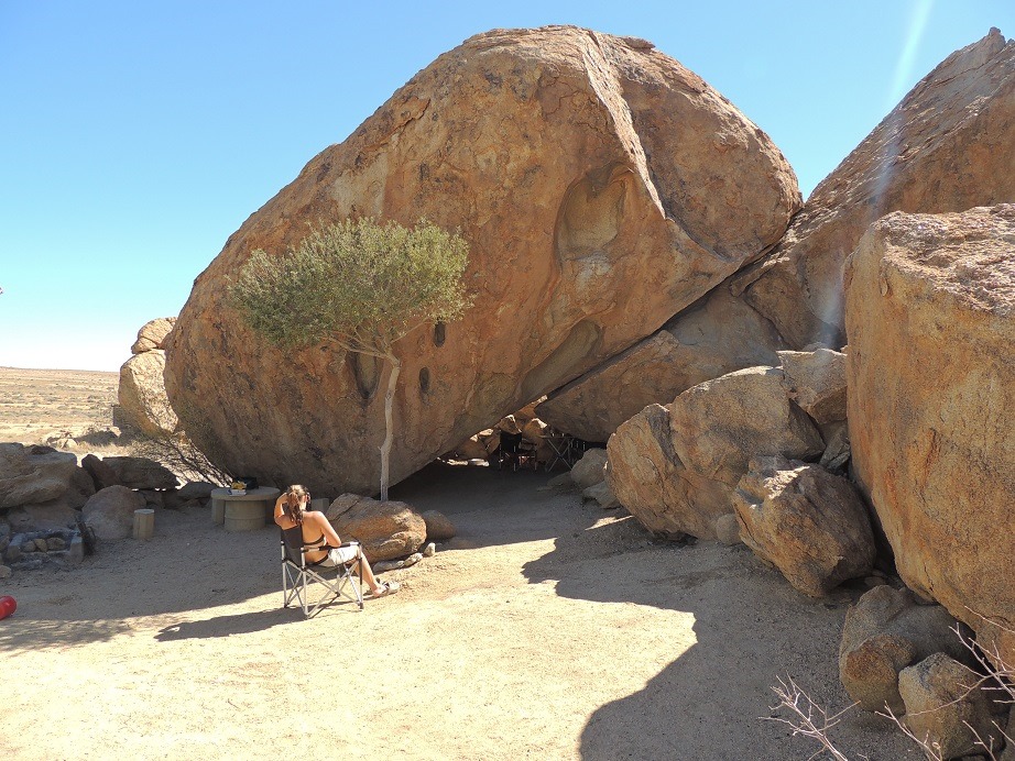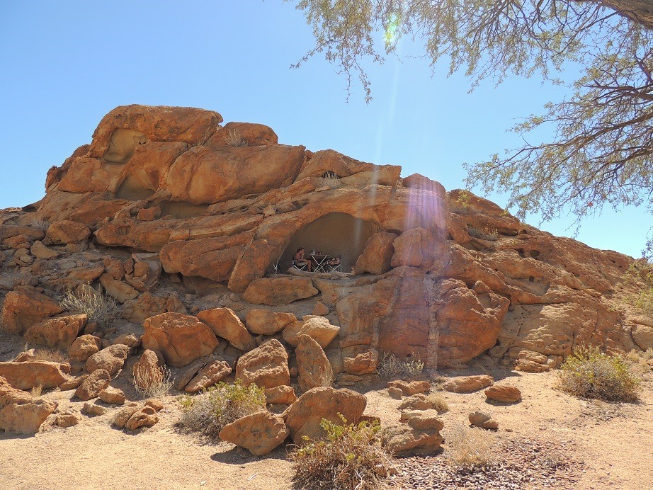 Wir haben locker unsere 4 Stühle reinbekommen, hatten noch jede Menge Platz für die Spieldecke und ab und an auch ein paar Besucher wie Klippschliefer, Wüstenmäuse oder verschiedene Vögelchen. Am Tag war die Höhle echt klasse, weil sie Schatten und Kühle bei Außentemperaturen von ca. 35 Grad gespendet hat.