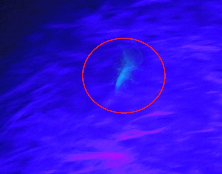 Er hat dann vorher gefragt was wohl von einem die Haare machen, wenn man einen Löwen von zu nah sieht – aufstellen – das machen diese Partikel dann auch, wenn man mit dem Magneten drunter her fährt, wie man auf dem Foto sieht. Und noch mal zur Erinnerung – diese riesen Menge zu sammeln waren 30 Sekunden mit dem Magneten über den Wüstensand. Wir haben alle nicht schlecht gestaunt.