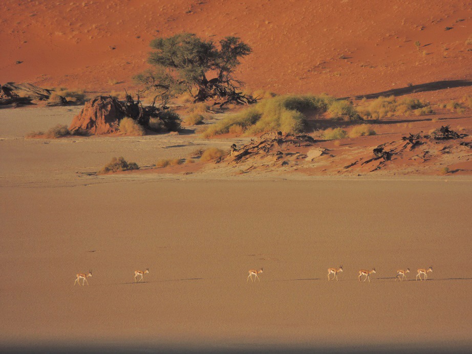Unten angekommen, oder besser gesagt auf halben Weg haben wir dann noch eine Herde Springböcke vorüberziehen sehen, was ein besonders beeindruckendes Schauspiel darstellte vor dieser tollen Kulisse.