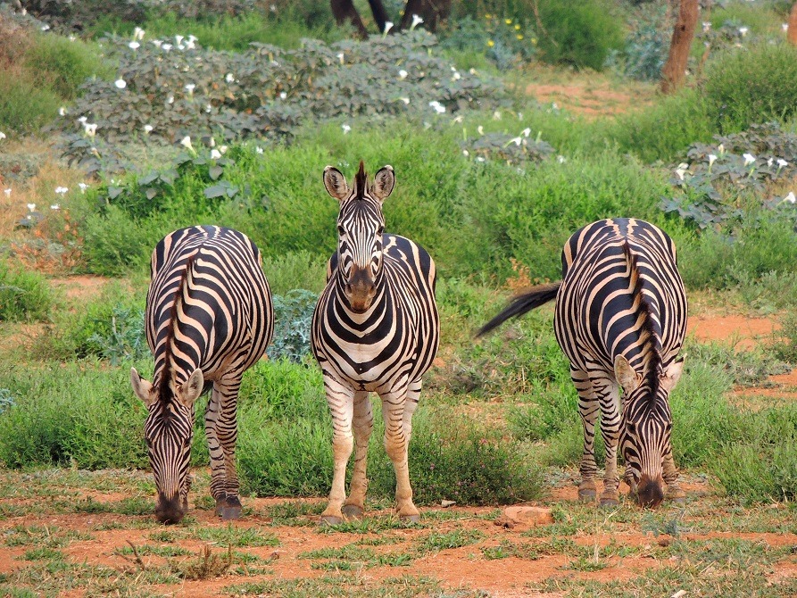 Und ich habe bewusst gesagt – Menschen. Denn am späten Nachmittag haben wir auf einmal Besuch bekommen, beim Abendbrot. Wir dachten wir gucken nicht richtig als Lenja sagte – “da kommt ein Zebra”. Und auf einmal stand eine ganze Herde Zebras um uns drumherum und hat uns beäugt nach dem Mott – hä – was wollen die denn jetzt hier, Saison ist doch vorbei ![]()