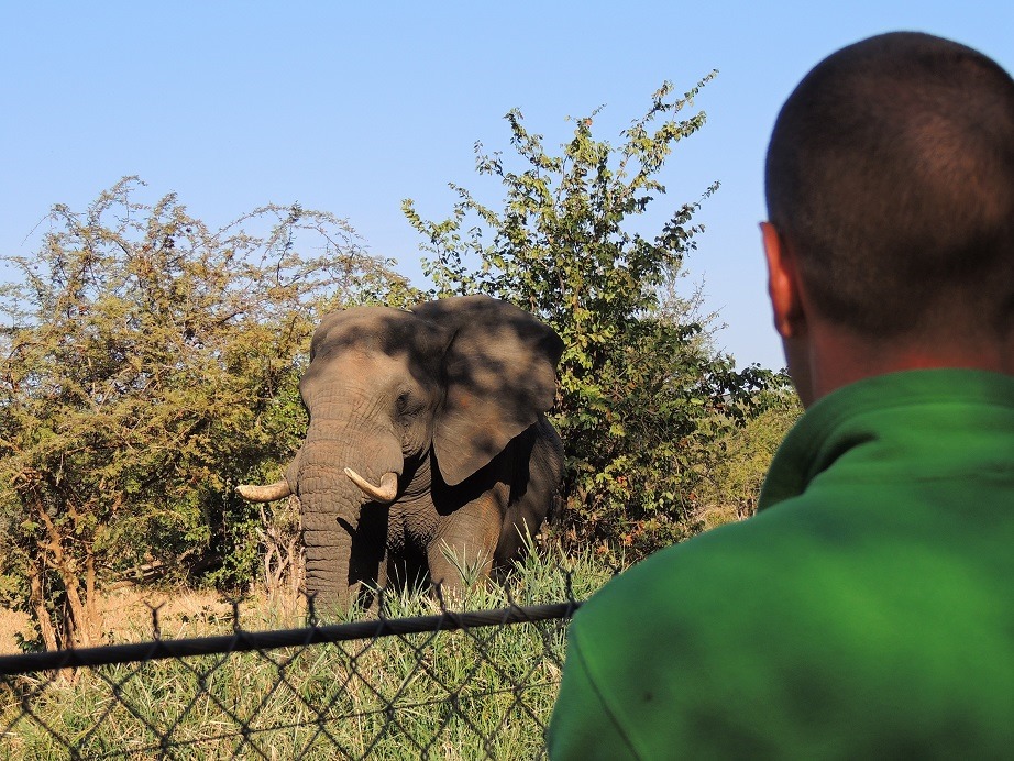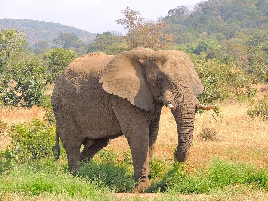 Der “Kleine”, ein Halbstarker der mit seiner Mutter zusammen unterwegs war wollte wohl mal ein bisschen die Kräfte messen. Nach seinem ersten Angriff auf das Auto hat die Mutter scheinbar für eine lange Zeit versucht, ihn zu beruhigen. Das war eine für mehrere Minuten sehr interessante Szene wie sich Kleiner und Mutter gegenüber standen und die Mutter wohl versucht hat, seinen Adrenalinspiegel wieder zu senken. Man rufe sich die Ohren der Beiden währen dieser Zeit in Erinnerung. So hatten wir ein weiteres, unvergessliches Erlebnis im Krüger, neben den vielen anderen.