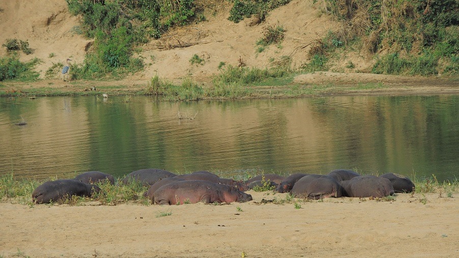 Hier sind wir so nah an die Hippos bekommen wie noch nie. Wären wir auf dem Unterdeck des Bootes gewesen hätten wir sie streicheln können – ungelogen.