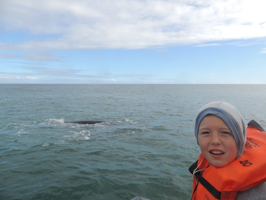 Moni und ich haben uns von den Strapazen der vergangenen Tage erholt und die Kinder hatten ihre Freude im Wasser. Nachdem wir nun einen so entspannten Tag hinter uns hatten, wieder mal ein paar Wale aus der Ferne, ca. 500m gesehen hatten, mit einem geliehenen Fernglas von einem einheimischen den wir am Strand getroffen hatten und uns nicht gehen lassen wollte, ohne dass wir gefühlte 2 Stunden sein Fernglas nutzen mussten, hatten wir uns dazu entschlossen, am nächsten Tag eine Wahltour zu machen auf einem kleinen Boot, was von unserem Ort aus fuhr. Am Morgen hatten wir noch rausgeschaut und das Wetter war nicht so dolle – die Tour sollte um 10 Uhr starten. Da es aber wohl nicht genug Mitfahrer gab wurde die Morgen-Tour abgesagt und es fand nur die 13 Uhr Tour statt. Jetzt war das Wetter auch herrlich und wir hatten am Morgen schon wieder einige Wale von unserer Terrasse aus beobachten können. Somit waren wir guter Dinge, auch auf der Tour welche zu sehen und nicht das ganze Geld im atlantischen Ozean zu versenken. Was wir dann aber erlebt haben, hat alles übertroffen, was wir uns erhofft hatten. Wir haben nicht nur einfach die Wale gesehen, wir haben sie erleben können… Und zwar so nah, dass wir sie hätten streicheln können, wen wir gedurft hätten.