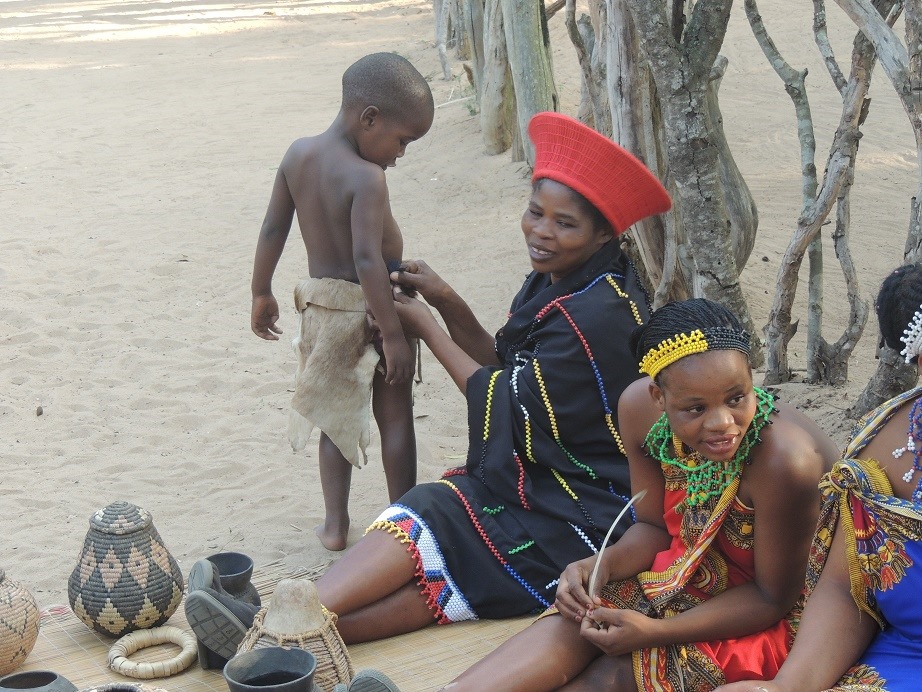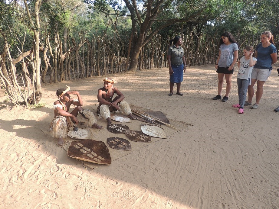 Die Route führte uns durch KwaZulu-Natal. Und ich denke die Zulu’s sollten jedem bekannt sein, dessen Geburtsjahr zwischen 1970 und 1980 liegt… Auf der 1. Afrika-Reise von Moni und mir vor mittlerweile knapp 20 Jahren haben wir einmal ein Zulu-Dorf besucht und Moni wollte dieses unbedingt noch mal machen um es auch den Kindern zu zeigen, wie eine große und sehr dominante Volksgruppe vor garnicht allzu langer Zeit noch in Afrika gelebt hat. Und da zufällig eines genau auf unserem Weg lag, haben wir das auch gemacht. Praktisch direkt um die Ecke von unserer Campsite in der Bushbaby-Lodge (in der abends die Bushbabies in einem Baum gefüttert werden, lag ein solches “Living-Village). Dort leben die Zulu die man besuchen kann tatsächlich noch traditionell, verdienen aber ihren Unterhalt damit, dass sie Touristen dieses Leben erklären und näher bringen. Insgesamt natürlich sehr touristisch, aber trotzdem sehr interessant, zumal der Besuch von einem englisch sprechenden Guide begleitet wird, der alles erklärt.