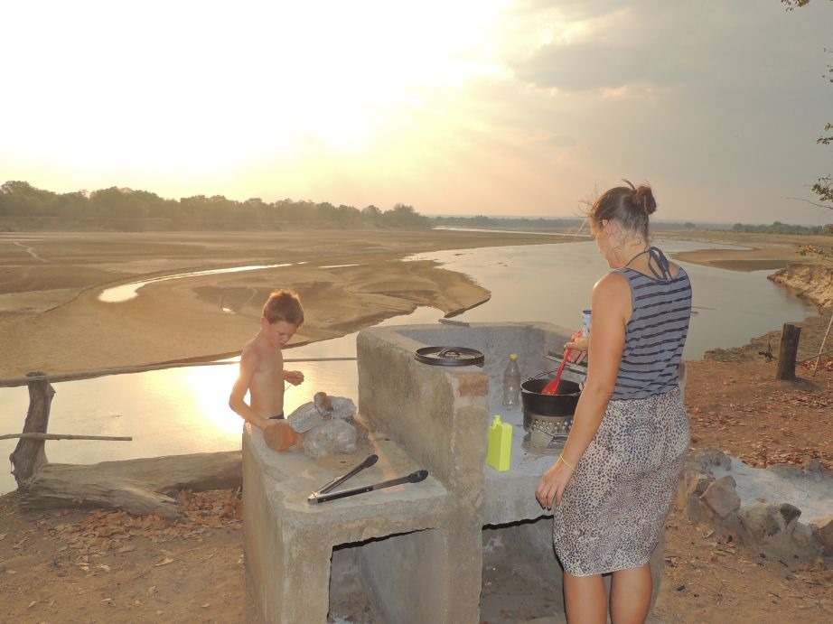 Gekocht wurde abends immer auf dem Feuer und dabei (wenn wir nicht gerade auf einem Drive waren) der Ausblick auf die Tiere und die wunderschöne Landschaft genossen. So schön wir dort haben wir bis heute noch nirgendwo gestanden. Nachdem wir uns dort dann richtig schön und heimelig “eingerichtet” hatten für 10 Tage die wir dort verbracht haben, konnten wir den Platz sehr gut als Basislager für Trips in den Park nutzen. Die Anfahrt hat ca. 15 Minuten in Anspruch genommen. Und mit den netten Bekanntschaften meinen wir nicht nur die lokale Bevölkerung, sondern auch andere Bekanntschaften die wir schließen konnten. Als wir ankamen kam kurze Zeit später direkt Frank auf uns zu, der mit Andrea, seiner Frau, auch Sambia bereiste. Beides Berliner die hier ihren Jahresurlaub verbracht haben. Über die Zeit die wir gemeinsam im Camp verbracht haben, haben wir uns gegenseitig ins Herz geschlossen – und Lenja und Silas haben aus den beiden lieben Berlinern direkt eine Art Ersatz-Oma und –Opa gemacht. Immer wenn es was zu erzählen gabt ist besonders Lenja direkt zu Frank geflitzt und musste sich mitteilen, der auch immer geduldig zugehört hat Smiley Es war echt eine tolle Zeit mit den beiden auf dem Platz und wir vermissen sie ein bisschen.
