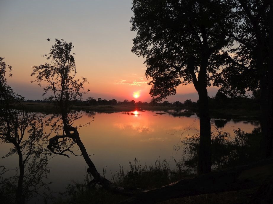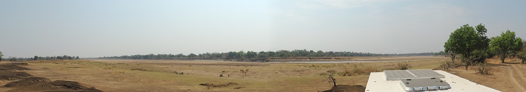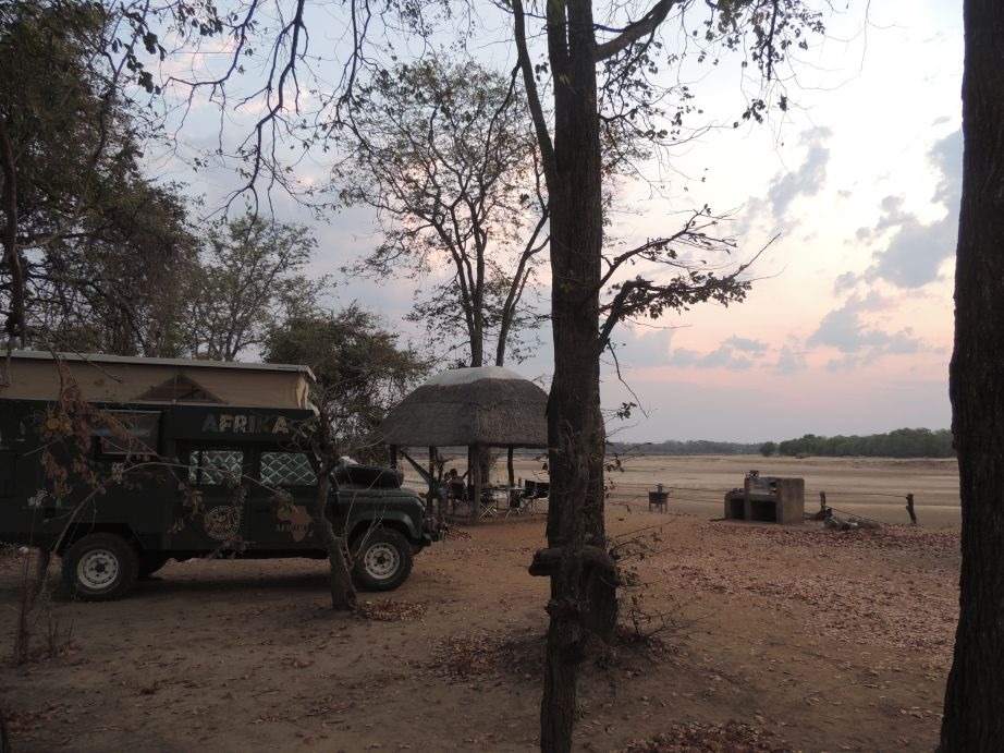 So, nun aber endlich im South Luange angekommen und schnur stracks zum Wildlife-Camp (ach ja, nachdem wir eine Tankstelle gefunden hatten die Diesel hat, den ein Auto tanken kann, was in den reichen Ländern gefahren wird – niedriger Phosphor Gehalt – bei uns seit 10 Jahren Standard, in Afrika ehr die Ausnahme – das sind Probleme von denen wir vorher noch nie was gehört hatten). Das Camp liegt direkt am Grenzfluß zum Park und wir hatten Glück, dass wir am 2. Tag auf die beste Campsite umziehen konnten. Direkt am Fluß und begrenzt durch den Busch zur Seite hin – ein Traum. Hier einfach mal ein paar Bilder, wie denn so der Blick war, und wo wir gestanden haben.