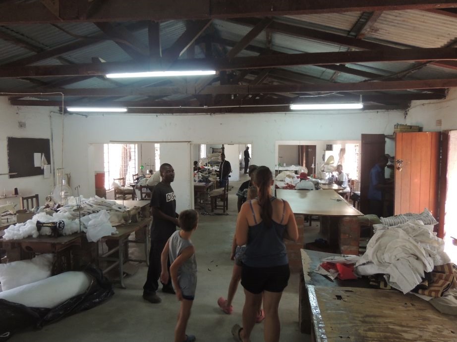 Aktuell wird die Expansion des Vertriebsweges nach Europa geplant. Lokal kann man denn auch die hergestellten Produkte in einem Shop erwerben, der nach verschiedenen Themen unterteilt ist. Insgesamt war der Besuch der “Fabrik” ein lohnenswerter Ausflug. Die beiden Herren die man unten links auf dem Foto sieht mischen übrigens anhand von Farbkärtchen händisch alle Farben zusammen. Alle verwendeten Farben basieren aus den 3 Grundfarben, Schwarz und Weiß, die aus Südafrika kommen und aus Pflanzen hergestellt werden. Der Kollege in weiß mit dem Schirmmützchen macht das schon seit 19 Jahren, die lieben langen Tag lang…