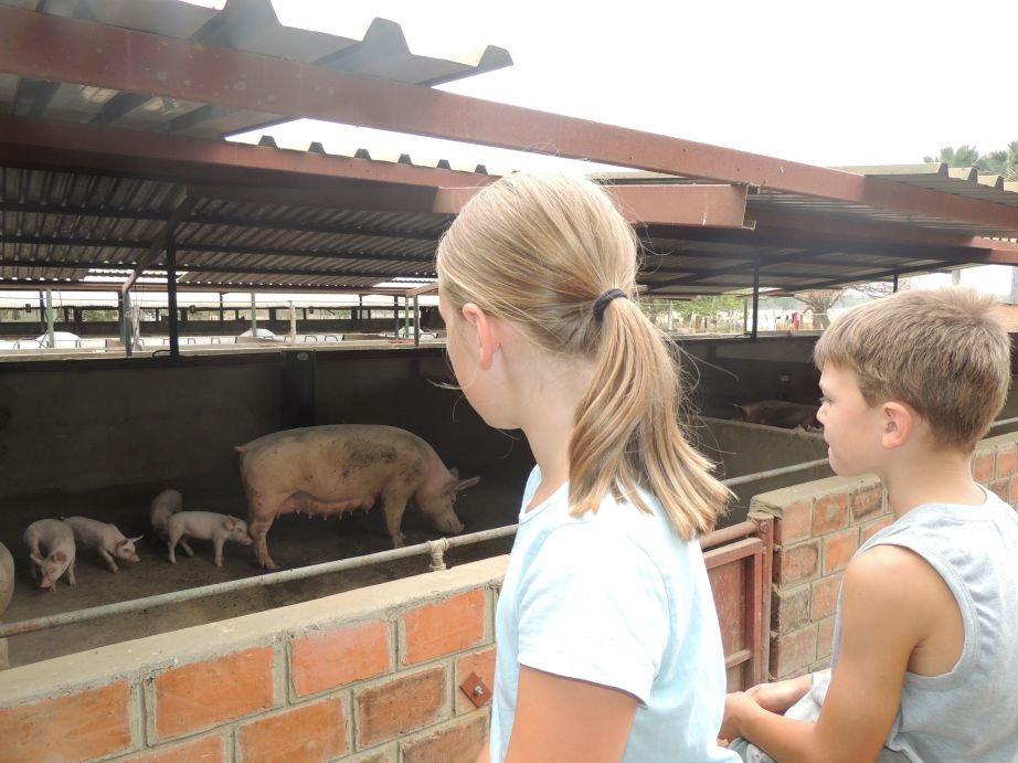 Von hier aus ging es nun weiter zur Fringilla-Farm, auf dem Weg nach Livingstone, unserer letzten Station vor der Grenze nach Namibia. Die Farm selber ist riesen groß, bietet neben der Viehzucht von Kühen und Schweinen und Farming auch einen Lodge- und Campingbetriebt mit einem klasse Restaurant, einem riesen Spielplatz und einer tollen Metzgerei, in der wir uns gut mit frischem Fleisch eingedeckt hatten. Als wir dann abends an dem Restaurant zu Abendbrot gegessen hatten, kam der Chefe des Betriebs bei uns vorbei und fragte ob es schmeckt. Natürlich – haben wir gesagt, was ja auch stimmte, und haben ihn dann direkt mal angesprochen, was Fringilla denn alles so macht. Und so sind wir dann vom Hölzchen aufs Stöckchen gekommen. Insgesamt gibt es wohl 4 Haupt-Geschäftszweige. Er selber verantwortet den Lodge-Betrieb und kam vor gut 20 Jahren als Schotte wie die Jungfrau zum Kinde. Seine damalige Freundin (und heutige Frau) war die Nichte des Besitzers von Fringilla. Jetzt war es so dass die damalige Leiterin des Lodge-Betriebes schwanger wurde und er überlegte, den Betrieb einzustellen. Auf Besuch in Schottland hat der Besitzer dieses wohl in der Runde mit Nichte und ihm erzählt. Der heutige Betreiber hatte dann angeboten, das Geschäft mal für 3 Monate weiter zu führen (es war damals noch sehr klein) um zu schauen, ob die Dame nach der Niederkunft dann das Business wieder übernehmen kann. Das Ganze (und seine heutige Frau) hat ihm dann wohl so viel Spaß gemacht und es lief so gut, dass er dann einfach dort hängen geblieben ist und Fringilla heute eines der größten Farming-Unternehmen in Sambia ist. Den Betrieb konnten wir uns dann auch frei anschauen und durften überall hin, was wirklich interessant war. Nur beim Schlachter wollte Moni dann nicht rein (Lenja erst schon, hat sich dann aber doch nicht getraut). Und neben den “klassischen” Tieren gab es dann auf der Farm auch noch einen Geier—Baum mit Geiern und Marabus. Die Kinder und wir hatten hier 2 sehr schöne Tage…