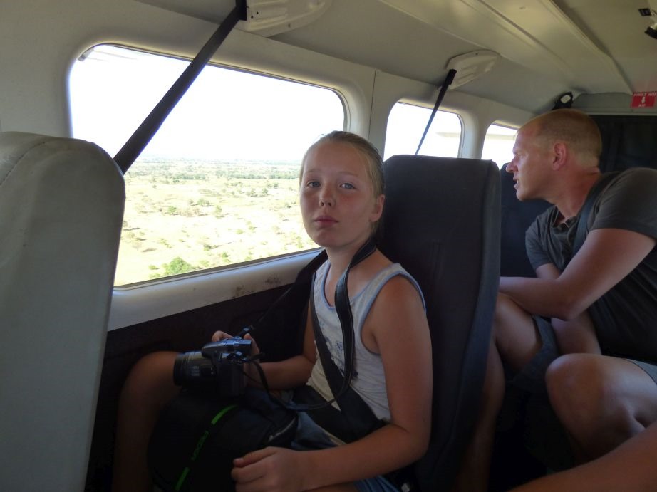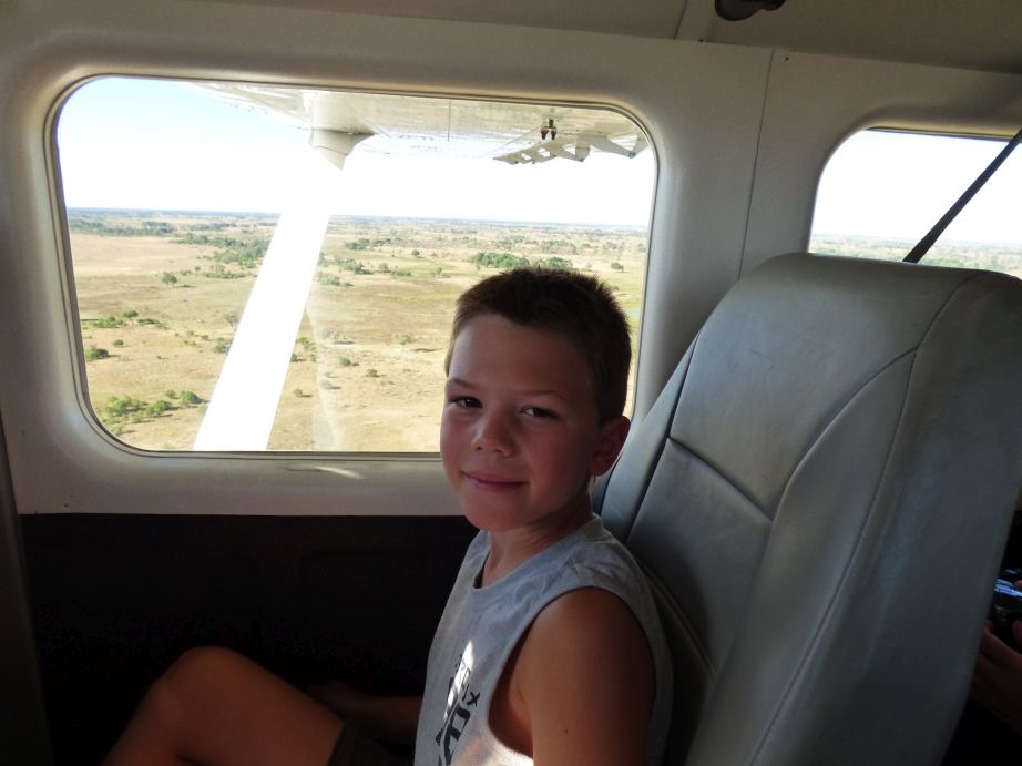 Eigentlich wird zur Unterkunft in Maun in jedem Reiseführer immer das Sedia Riverside Hotel mit angeschlossenem Campingplatz empfohlen. Dort waren wir auch bei unserer letzten Reise. Jedoch liegt der Platz sehr offen ohne einen schönen Ausblick und die Anlage an sich ist auch nicht sonderlich attraktiv. Daher haben wir uns entschieden mal was anderes zu probieren und fahren zur Island Safari Lodge und sind extrem positiv überrascht. Eine wunderschöne Lage zu einem Schnäppchen-Preis (die Kinder zahlen nicht mal was). Die Anlage ist extrem gepflegt und der Campingplatz liegt direkt nach hinten raus an einem Fluss. Die Lodge hat extra zwei Pools, einen Riesen-Pool für den Campingplatz und einen etwas kleineren für den Lodge-Bereich. Von daher – klare Empfehlung. Viel schöner als das Sedia-Hotel und absolut ruhig gelegen. Einziger Wermutstropfen ist, dass manchmal nachts ein irre gewordener Esel rumbrüllt oder ein Pferd mit Glocke (hier tragen oft auch die Pferde Kuhglocken) und wachbimmelt. Wir haben es dann “Glöckchen” getauft… Von unserem Stützpunkt auf dem wir uns dann für 4 Nächte eingerichtet haben sind wir dann auch zum Delta-Flug gestartet. Das war wieder ein Erlebnis, genau wie beim letzten Mal. Der Flug war ein bisschen rumpelig, da eine kleine Maschine und Lenja hat tapfer mit sich gekämpft (manchmal mit Tränchen in den Augen wenn der Pilot sich wieder 90Grad in die Kurve gelegt hat) und auch ein paar schöne Fotos geschossen. Silas ist mitten im Flug eingeschlafen – der Kerl schläft überall und in jeder Position, wenn ein Motor brummt – echt unglaublich. Maschinen scheinen etwas beruhigendes auf ihn auszustrahlen und ich habe große Hoffnung, dass er mal was technisches studiert, wie der Papa Aus dem Flugzeug konnten wir eine große Büffelherde ausmachen, jede Menge Elefanten und ein paar Nashörner, neben jede Menge anderem “Gazellenwild”.