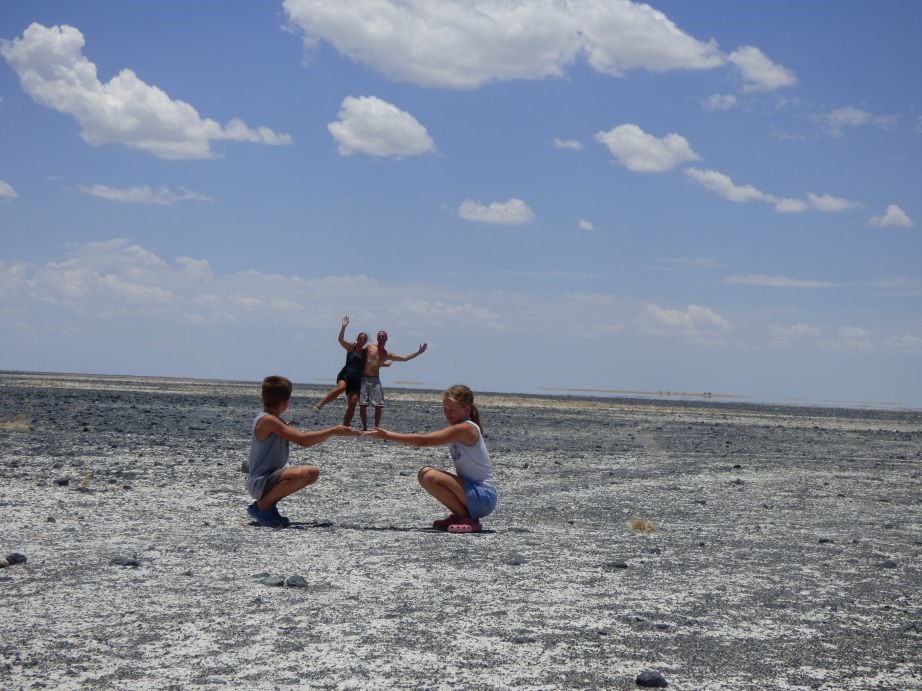 Insgesamt war die Landschaft superschön und wir haben die absolute Ruhe genossen, die diese Weite und Einsamkeit mit sich bringt. Denn viele Menschen und viele Tiere leben nicht auf dieser riesengroßen Fläche die bis auf ein paar Bauminseln nur aus Gras- und Salzlandschaft besteht (das man übrigens direkt vom Boden essen kann), wie Lenja hier eindrucksvoll belegt.