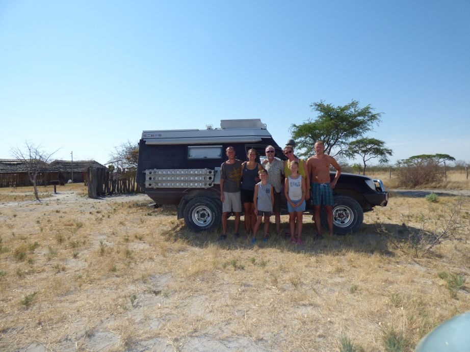 Bevor ich das vergesse. Auf unserem Zwischencamp vor dem Cobe-Inlandsteil haben wir noch 2 nette Damen mit ihren 2 netten Söhnen getroffen (Deutsche), die eigentlich mit 2 Auto unterwegs waren zu diesem Zeitpunkt. Als wir sie dann im Chobe wiedergetroffen haben saßen auf einmal alle 4 in einem Wagen – ihnen war bei einem Wagen die Kupplung verreckt – was ein Drama. Ihr Vermieter (Britz) wollte ihnen keinen neuen Wagen stellen und auch den Schaden mussten sie komplett selber Zahlen (+/- 1500€). Und da sie die gleiche Strecke wieder raus mussten wie wir, haben wir ihnen angeboten sie dann “zwischen” uns zu nehmen bei der Ausfahrt. Darüber waren sie heilfroh und Thomas und wir haben dann über Funk Kontakt gehalten und die beiden Damen mit ihren Söhnen sind dann in der Mitte gefahren. Hat auch alles gut geklappt, bis 900m vor dem Exit-Gate vom Chobe. Und Schwups – steckten auch sie fest. Sie habe ich dann einfach mit einem 10m Bergegurt rausgeschleppt und 15 Minuten später standen wir am Gate und waren alle froh, den Chobe hinter uns zu haben