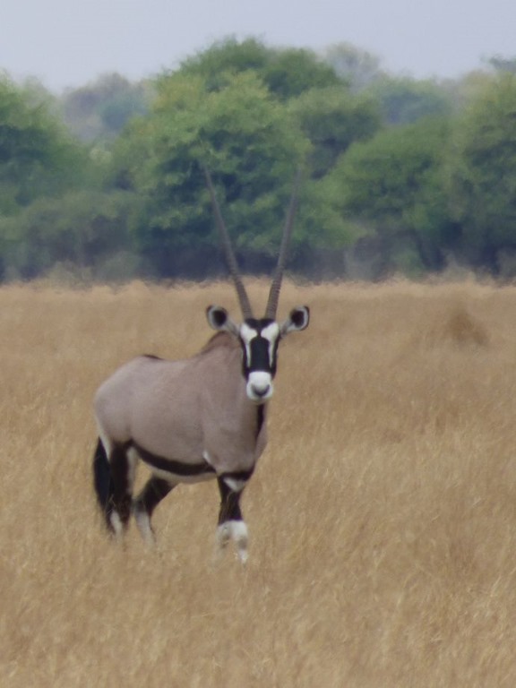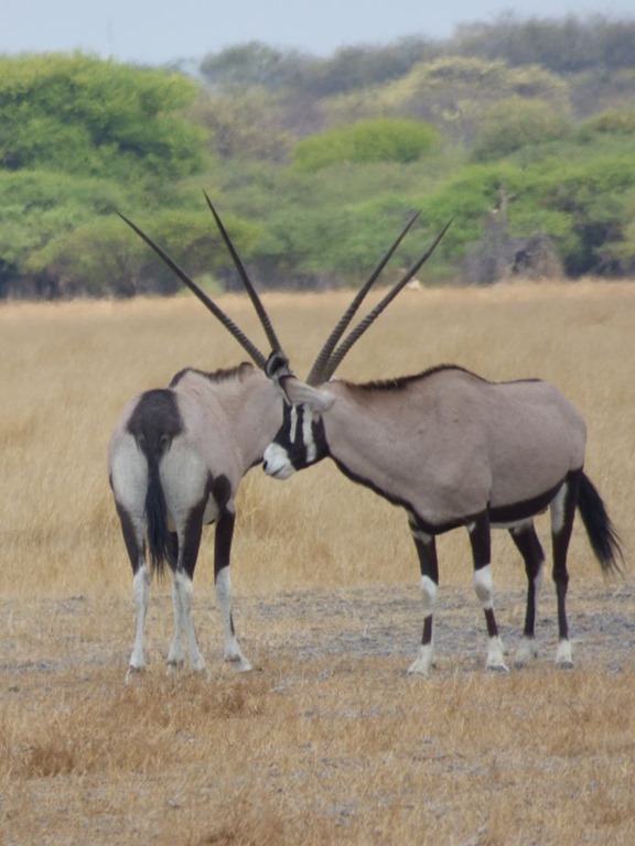 So wie auf dem Foto haben die uns bestimmt 2 Minuten angeschaut und sich dabei kein bisschen bewegt. Wir konnten unser Glück nicht fassen – 15 Minuten im Park und dann sowas. Das ging dann aber so weiter. Der Park ist einfach ein Traum und hat uns so gut gefallen dass wir nach Thomas Abreise dann auch noch mal extra deswegen nach Orapa gefahren sind und hier 4 Tage verbracht haben um in den Park fahren zu können (das Permit ist 30 Tage gültig). Wir haben den Park dann für uns “Little Serengeti” genannt, weil sich das Tierleben um eine zentrale, große Pfanne abspielt mit einem Wasserloch an der Seite. Es ziehen große Herden von Zebras, Gnus, Oryx und anderen Gazellen durch diese Pfanne in den Abendstunden und immer wieder sieht man auch Gruppen von 2-4 Nashörnern, oft mit Jungen durch diese Eben laufen und Staubfahnen hinter sich herziehen. Das Ganze ist ein Traum ehrlich gesagt und wenn man das mal auf das Verhältnis Preis/Leistung beschränkt das mit Abstand beste Verhältnis was wir je bei unseren Reisen hatten. Wir können jedem nur empfehlen Orapa zu besuchen – ein MUSS wenn man in Botswana und dieser Ecke ist. Und die Lodge (primär auf Business-Besucher ausgelegt) ist auch klasse und nur ca. 30km von Orapa entfernt.