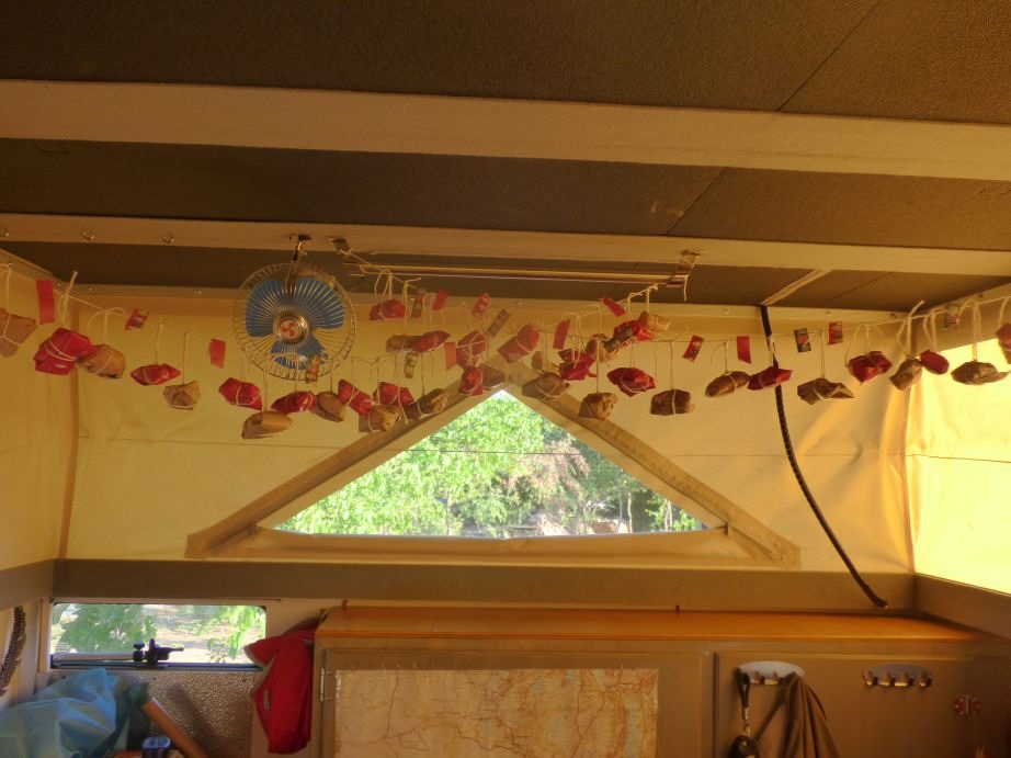 Jeder hatte sein “Schnürchen” an dem jeweils die Päckchen mit dem Lecker hingen Und neben den Lecker gab es dann auch noch anderes Interssantes in unserem Camp, das Moni per Zufall morgens nach dem Zähneputzen im Strauch nebenan entdeckt hatte…
