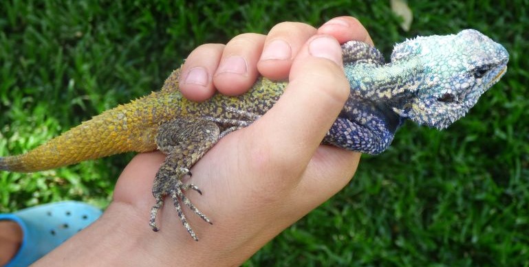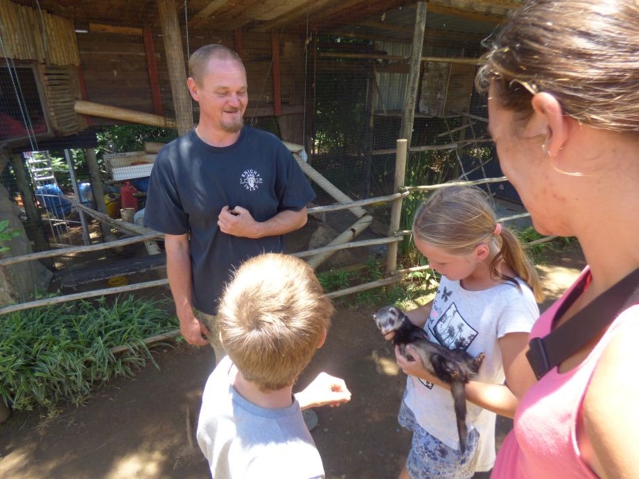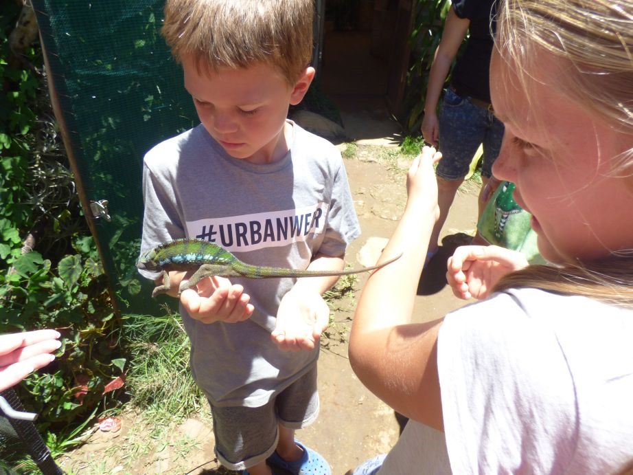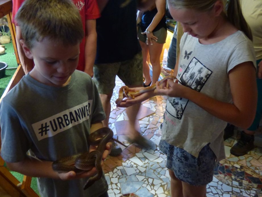 Nachdem die Flugshow dann vorbei war sind wir die nächste Einfahrt abgebogen und haben dort eine Reptilienführung mitgemacht. Das ist übrigens alles ein bisschen anders als bei uns. Der Reptilien-Mann hatte einfach riesen Spaß an den Tieren und hält sich diese daheim. Irgendwann wollte er seine Begeisterung teilen und bietet seit dem kleine Führungen an und man kann alle Tiere auch mal selber in die Hand nehmen und damit spielen – echt cool…