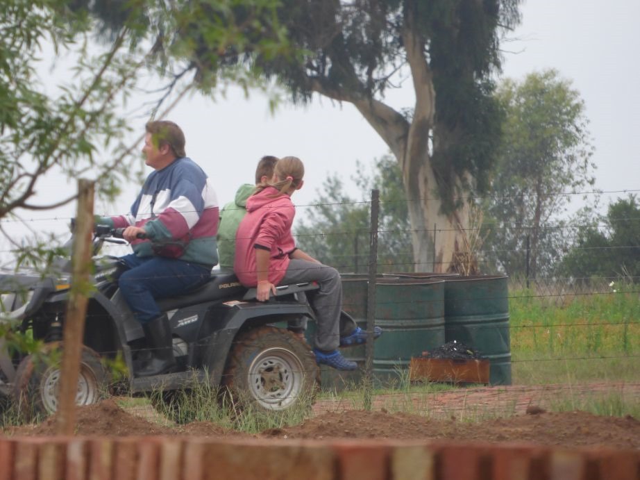 So, von dem kleinen Resort aus weiter auf eine Farm, auf der man auch Campen kann. Auch hier wieder nach einer netten Unterhaltung mit den “Verwaltern” der Farm und ein paar Geschichten die wir ausgetauscht haben waren unsere Kinder direkt “drin”. Am nächsten Morgen kam die Verwalterin und hat unsere beiden abgeholt die Strauße zu füttern und das Warzenschwein zu besuchen… Natürlich mit dem Farm-Eigenen Quad… Die Wege sind einfach zu lang weil alles so groß und weitläufig ist im Vergleich zu uns in Europa. Und ja – natürlich vertrauen wir unsere Kinder direkt immer den “Lokalen” an. Wie sollte es sonst funktionieren? Wir können doch unsere Kinder nicht immer im Auge halten. Und alle Menschen die wir bisher getroffen haben waren extrem nett, hilfsbereit und super offen und ehrlich. Die Angst das jemand einem was negatives oder gar böses will legt man hier ganz schnell ab. Man könnte meinen, dass die meisten Menschen hier noch über ihr natürliches “Urvertrauen” verfügen – was wir in unserer Gesellschaft leider schon lange verloren haben.