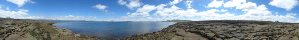 Der Damm liegt in einem riesigen Naturschutzgebiet mit den Drakensbergen dahinter – ein Panorama was im wahrsten Sinne des Wortes Atemberaubend ist mit Blick in die Berge und noch weitere Seen.