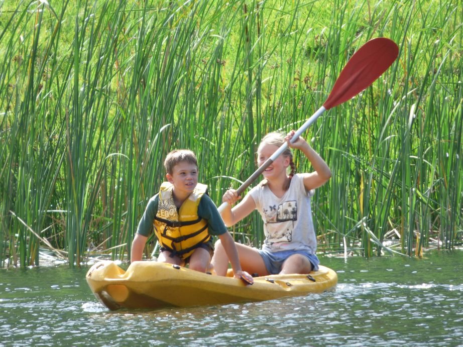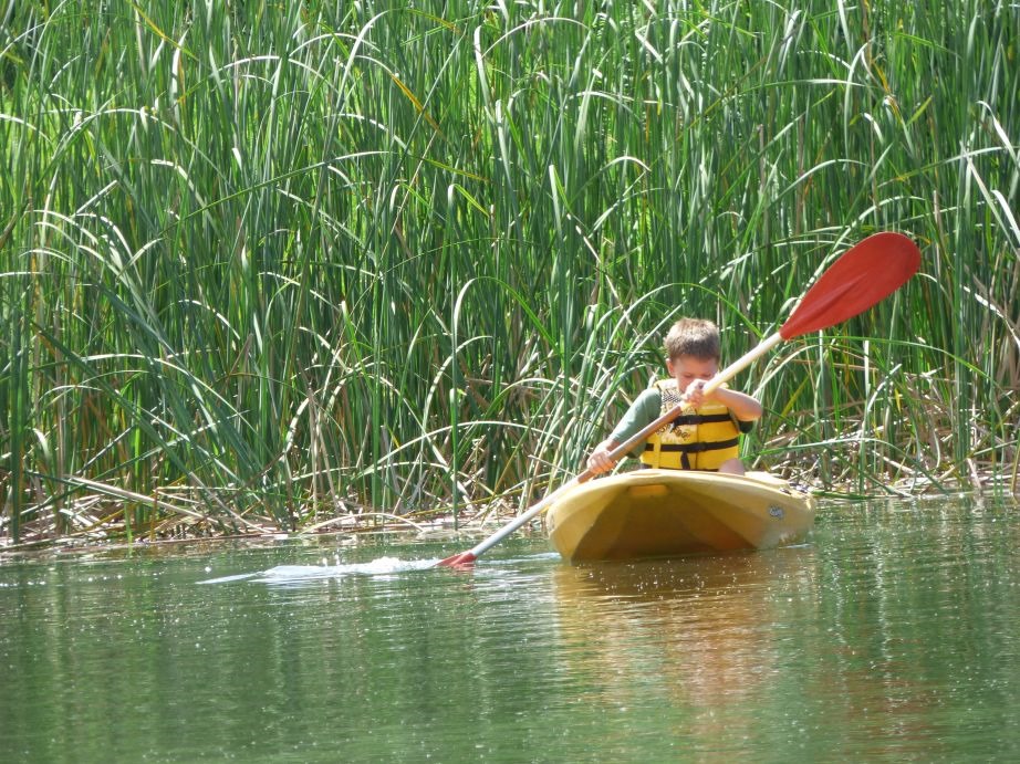 Und neben dem Angeln direkt vor der Haustür kam dann noch das Kanu-fahren dazu. Am ersten Tag noch mit Schwimmweste, später ohne alles.