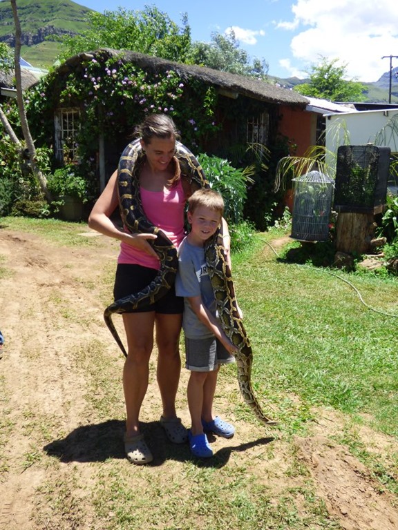 So, jetzt mache ich für heute Schluß. Die Spaghetti Bolognese sind fertig und duften herrlich. Ein Gewitter zieht über die Berge und wir schmeißen gleich mal den Holzofen unserer kleinen Weihnachtsunterkunft (wunderschöne Berghütten in den Bergen zu Lesotho) an. Ach ja – es gibt kein Fernsehen, keine Straßen rundherum, aber Internet auf unserem Blog-Rock . Gut, dass unser Handy eine Hotspot-Funktion hat und wir unseren Laptop damit verbinden können. Vielleicht mach ich morgen oder übermorgen weiter… Denn es gibt noch vieles zu erzählen über Raubvögel, Reptilien, Angeln, Reiten, Lesotho, viel viel Ruhe,…
