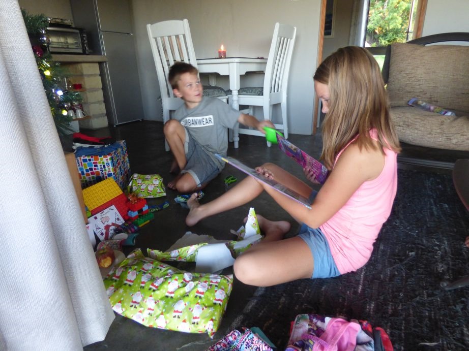 Und so haben wir dann abends um 6 Uhr bei 25Grad und strahlendem Sonnenschein Bescherung gehabt Naja – die Kinder hat es nicht gestört.