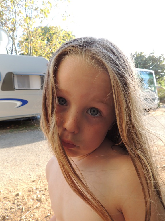 Sie ist ein Sonnenanbeter, hier bei unseren Freunden in Frankreich, weswegen wir wahrscheinlich auch immer dahin fahren, wo es warm ist und möglichst viel die Sonne scheint ![]()